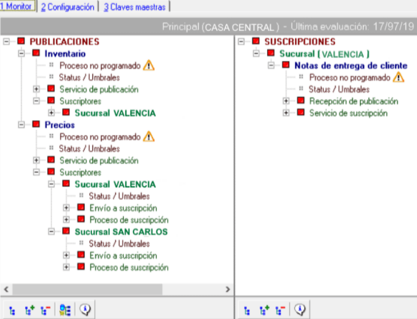 La misma cónsola le mostrará el resultado del flujo de información, con los correspondientes alertas cuando cualquiera de los canales de comunicación no fluya según los tiempos configurados.